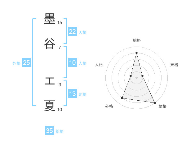 墨谷 エ夏さんの総格は35画の4点!