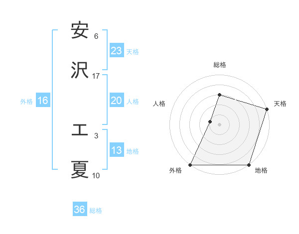 安沢 エ夏さんの外格は16画の5点!
