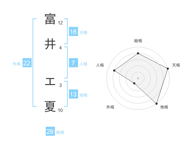 富井 エ夏さんの総格は29画の4点!