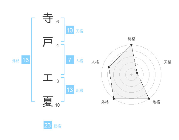 寺戸 エ夏さんの外格は16画の5点!