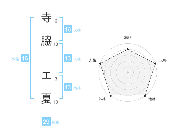 寺脇 エ夏さんを姓名の画数から五運を鑑定