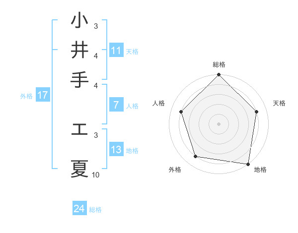 小井手 エ夏さんを姓名の画数から五運を鑑定