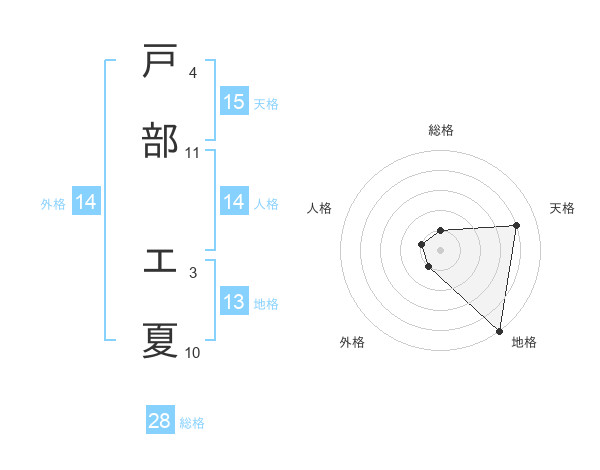 戸部 エ夏さんを姓名の画数から五運を鑑定