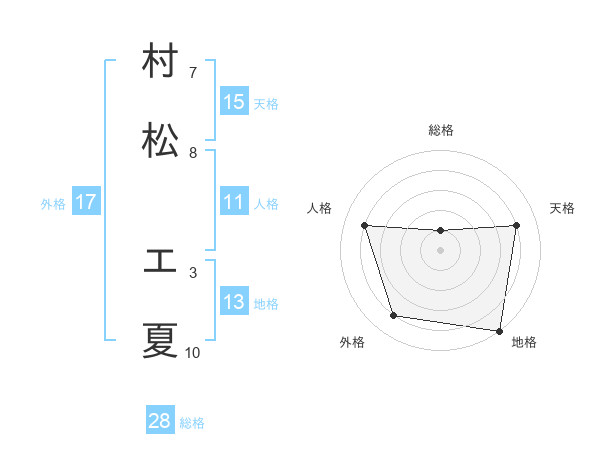 村松 エ夏さんを姓名の画数から五運を鑑定