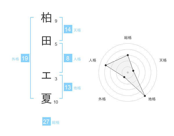 柏田 エ夏さんの総格は27画の3点!