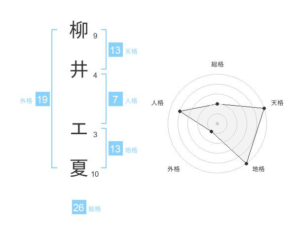 柳井 エ夏さんの天格は13画の5点!
