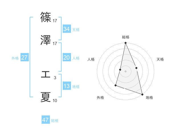 篠澤 エ夏さんの総格は47画の5点!
