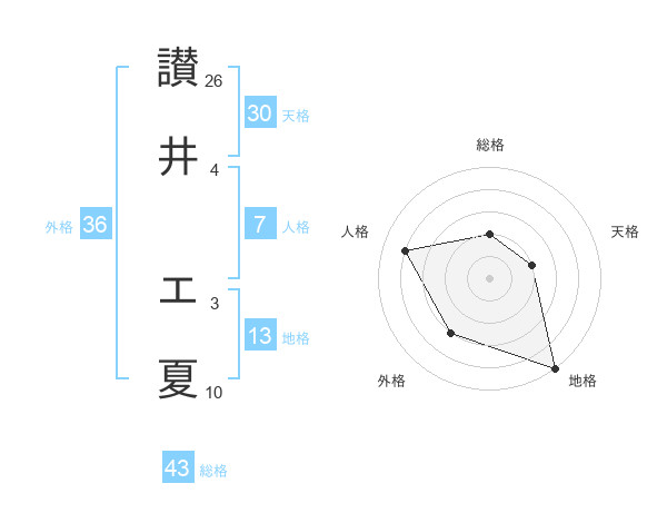 讃井 エ夏さんを姓名の画数から五運を鑑定