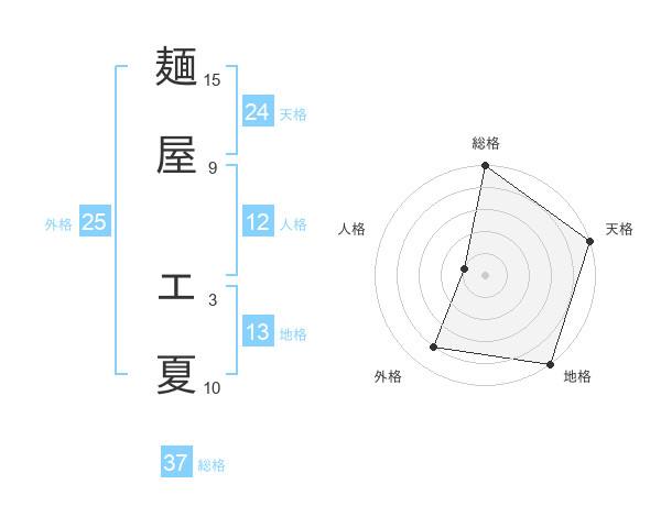麺屋 エ夏さんを姓名の画数から五運を鑑定