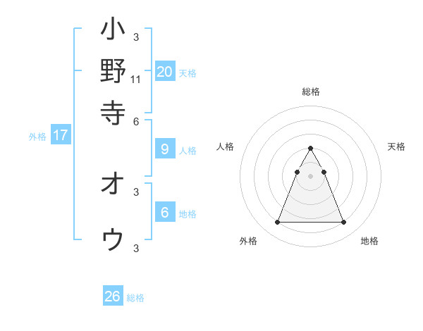 小野寺 オウさんの総格は26画の2点!