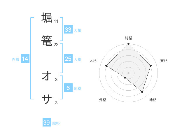 堀篭 オサさんの総格は39画の5点!