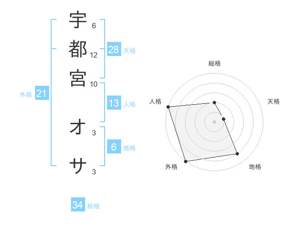 宇都宮 オサさんを姓名の画数から五運を鑑定