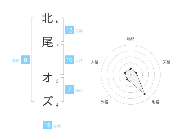 北尾 オズさんの天格は12画の1点!
