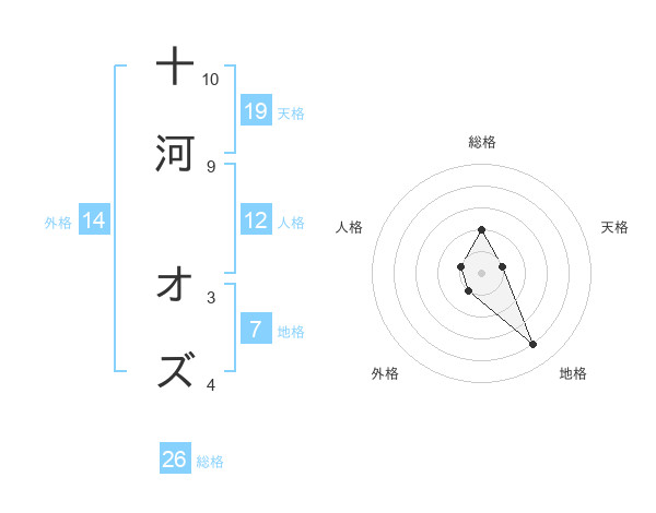 十河 オズさんの天格は19画の1点!