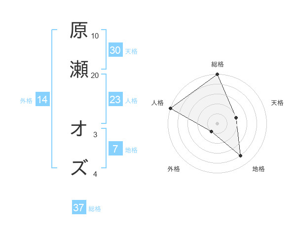 原瀬 オズさんの総格は37画の5点!