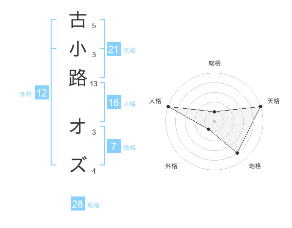 古小路 オズさんの天格は21画の5点!