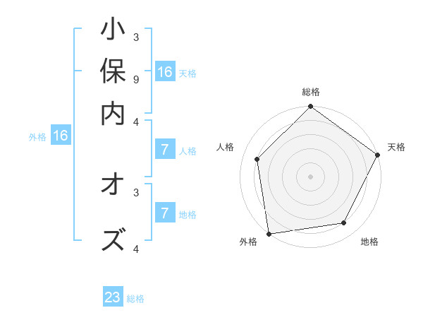 小保内 オズさんの総格は23画の5点!