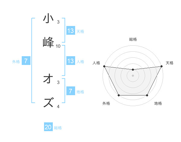 小峰 オズさんの総格は20画の1点!