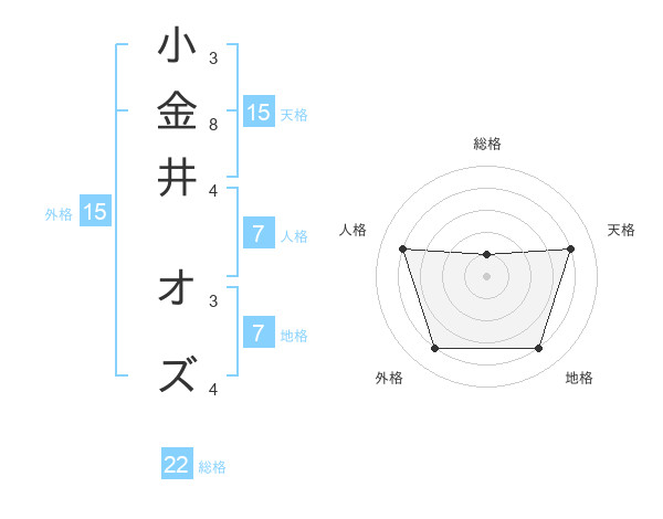 小金井 オズさんの外格は15画の4点!