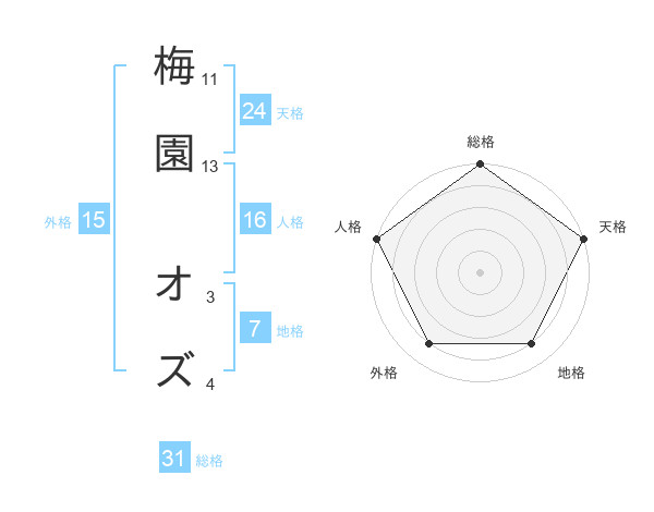 梅園 オズさんの天格は24画の5点!