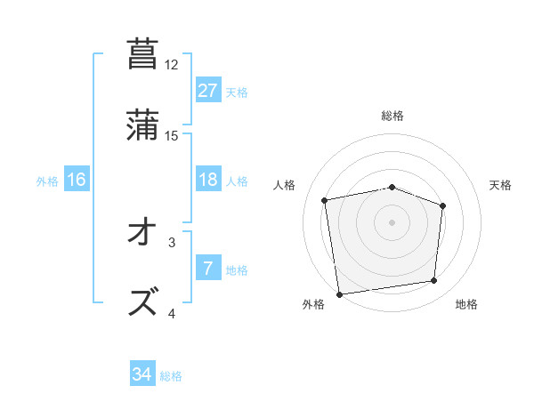 菖蒲 オズさんの天格は27画の3点!