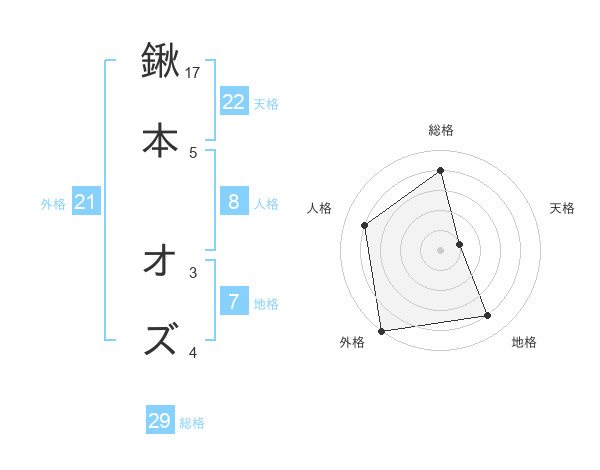 鍬本 オズさんの外格は21画の5点!