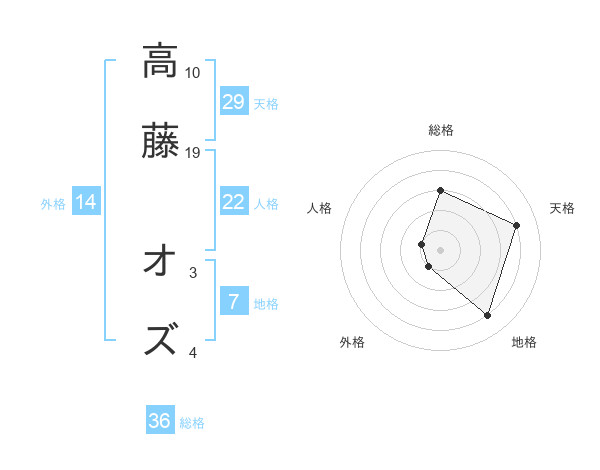 高藤 オズさんの天格は29画の4点!
