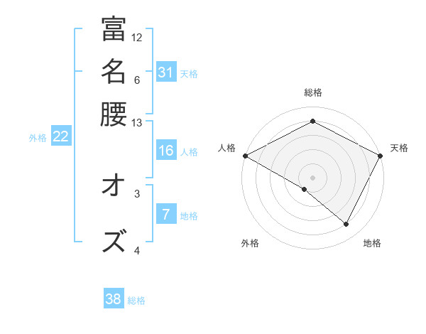 富名腰 オズさんの総格は38画の4点!