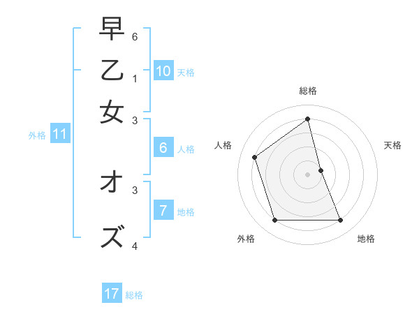 早乙女 オズさんの総格は17画の4点!