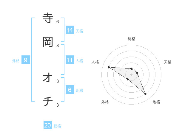 寺岡 オチさんの総格は20画の1点!
