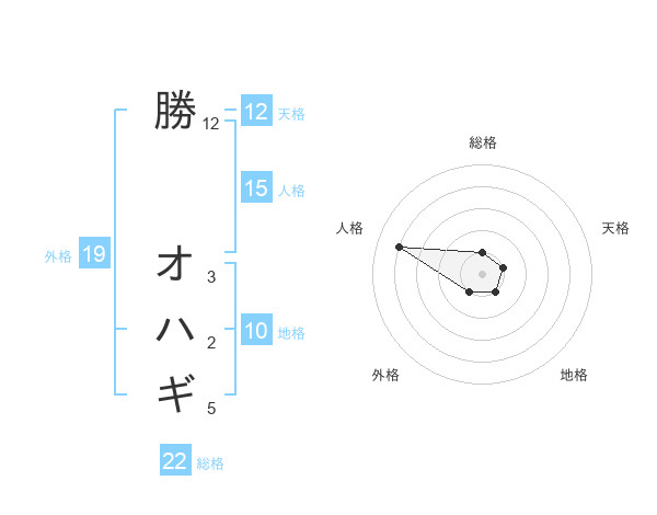勝 オハギさんの総格は22画の1点!