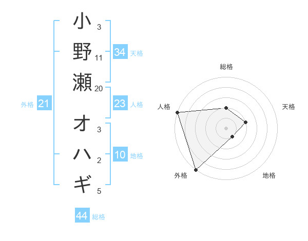 小野瀬 オハギさんの総格は44画の2点!