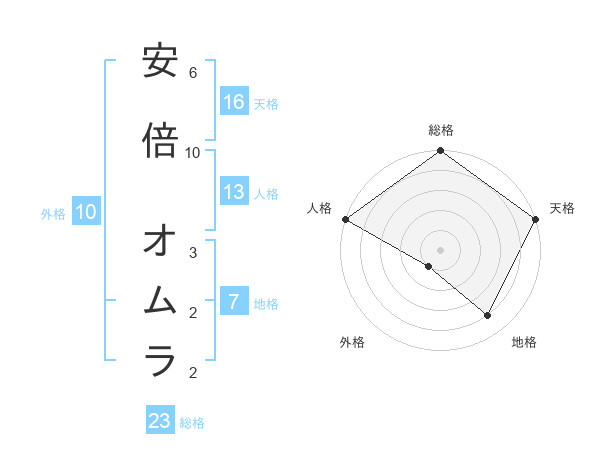 安倍 オムラさんの天格は16画の5点!