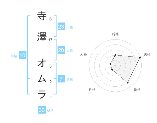 寺澤 オムラさんの天格は23画の5点!