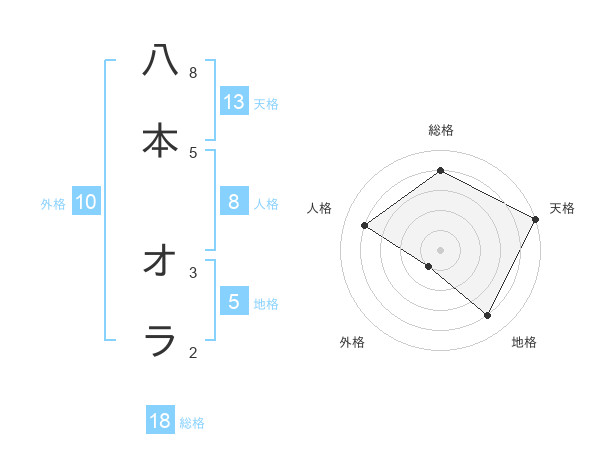 八本 オラさんの天格は13画の5点!