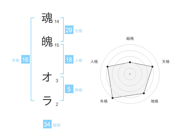 魂魄 オラさんの外格は16画の5点!