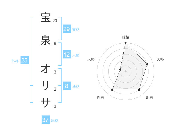 宝泉 オリサさんを姓名の画数から五運を鑑定