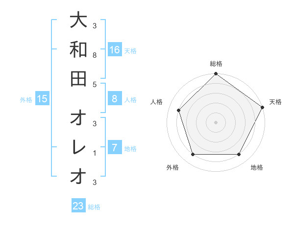 大和田 オレオさんの総格は23画の5点!