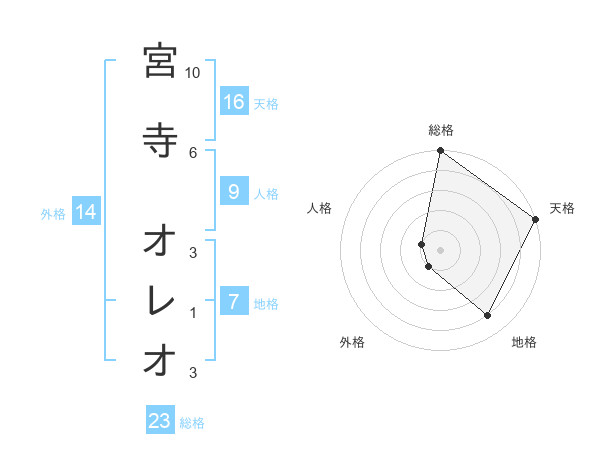 宮寺 オレオさんを姓名の画数から五運を鑑定