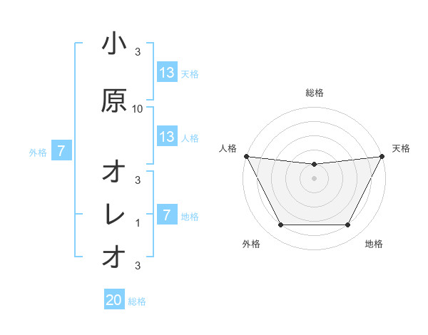 小原 オレオさんの天格は13画の5点!