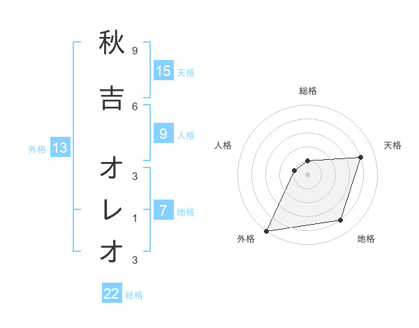 秋吉 オレオさんの天格は15画の4点