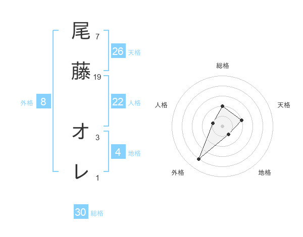尾藤 オレさんを姓名の画数から五運を鑑定