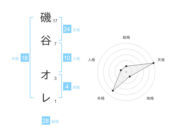 磯谷 オレさんの天格は24画の5点!