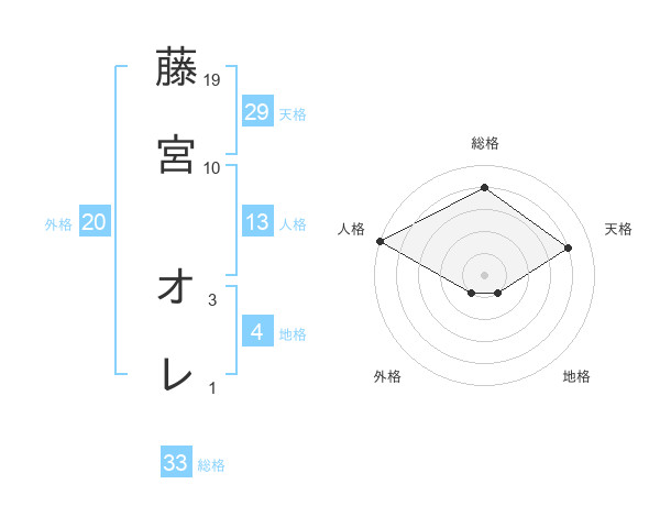 藤宮 オレさんの天格は29画の4点!