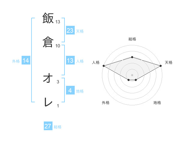 飯倉 オレさんの総格は27画の3点!