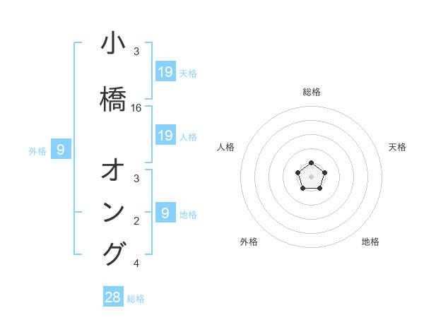 小橋 オングさんの総格は28画の1点!