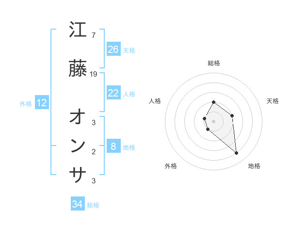 江藤 オンサさんを姓名の画数から五運を鑑定