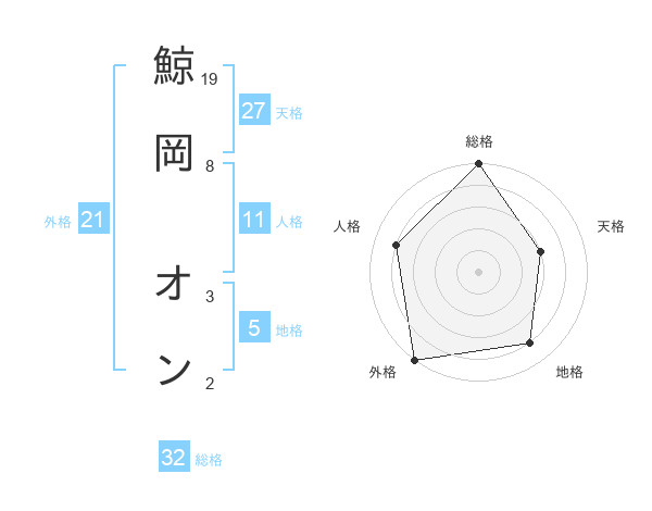 鯨岡 オンさんを姓名の画数から五運を鑑定