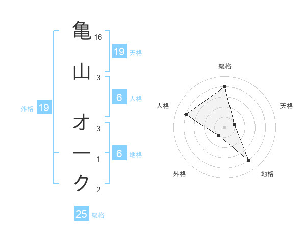 亀山 オークさんの総格は25画の4点!