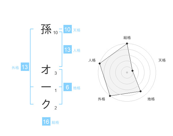 孫 オークさんの総格は16画の5点!